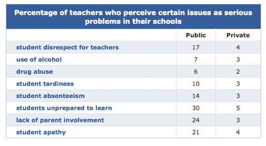 Behavioral issues are less of a problem in private school classrooms, as are any concerns about school safety.